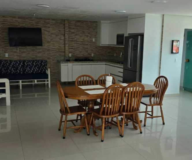 Espaço gourmet com sala e banheiro